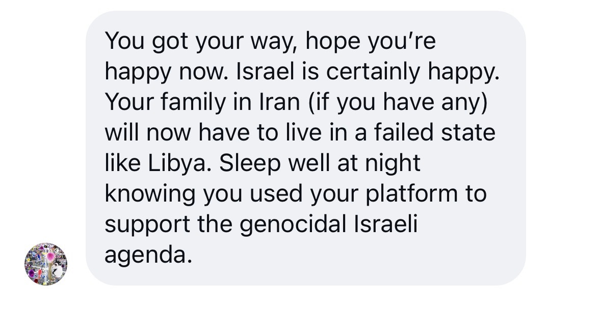 Yes, I am anti-war with Iran. I did not think that needed clarification. The only people who truly benefit from war are the billionaires who profit from it. But being anti-war does not require mourning a dictator.